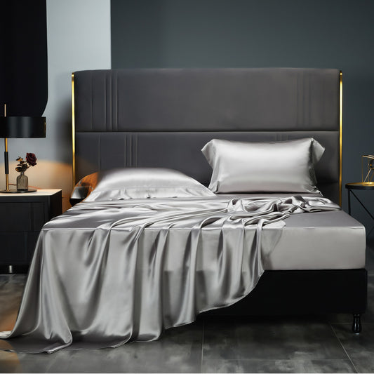 YOUR MOON 100% Mulberry Silk Sheets Set 4 Pcs, 25 Momme Mulberry Silk Bed Sheets, Ultra Soft Luxury Bedding Sets, 1 Silk Fitted Sheet, 1 Silk Flat Sheet, 2 Silk Pillow Shams