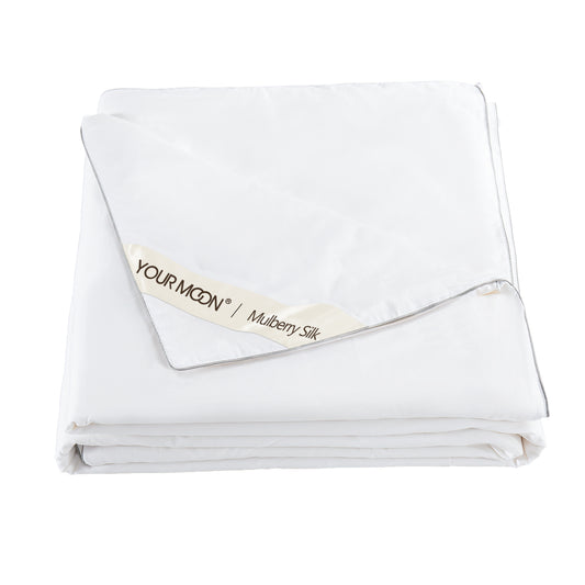 YOUR MOON Luxurious Summer/Spring Lightweight Mulberry Silk Comforter, 100% Natural Long Strand Silk Fill Duvet Blankets, Luxury Silk Bedding Summer, Noiseless Cotton Shell